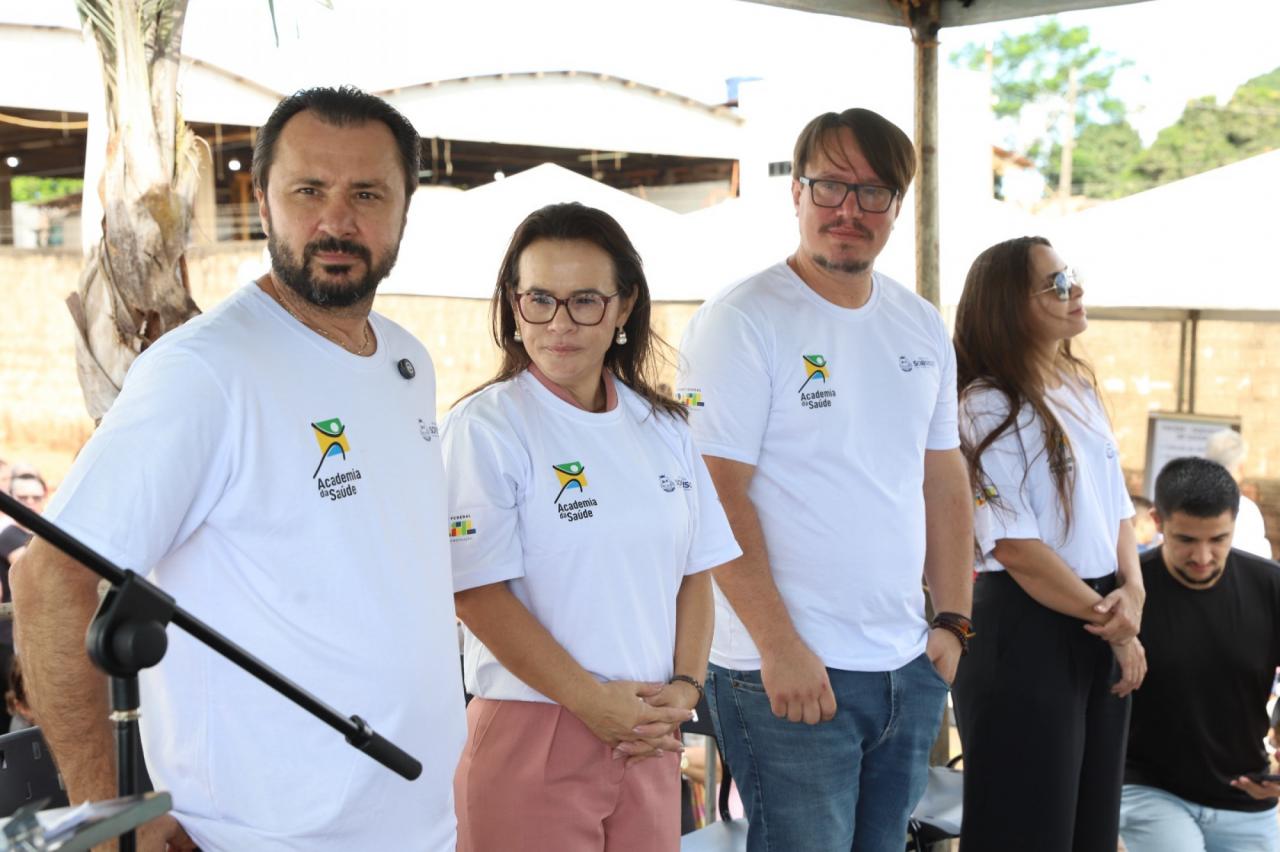 Já da coordenação estadual, estiveram presentes a responsável técnica estadual do Programa Academia na Saúde da Coordenadoria de Promoção e Humanização da Saúde- COPHS/SAS/SES-MT, Andressa Fantim Giroldo Pinho; a coordenadora estadual da Promoção e Humanização da Saúde, Rosiene Rosa Pires e a responsável técnica estadual de Alimentação e Nutrição da Coordenadoria de Promoção e Humanização da Saúde, Jane Kátia Vivas Taveira, que parabenizaram o trabalho desenvolvido na cidade. Andressa pontuou que o foco central da Academia da Saúde é trabalhar com ações de promoção da saúde e prevenção de doenças.