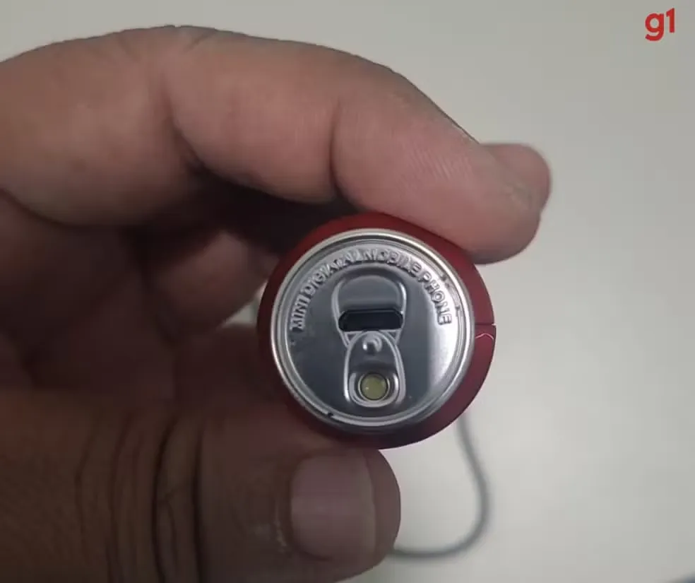 Fotos feitas pelos policiais mostram que o aparelho, disfarçado de lata de refrigerante, funcionava como um celular comum. Ele tinha espaço para chips, saída de som, bateria, botões de comando, tela com interface funcional e demais componentes eletrônicos.