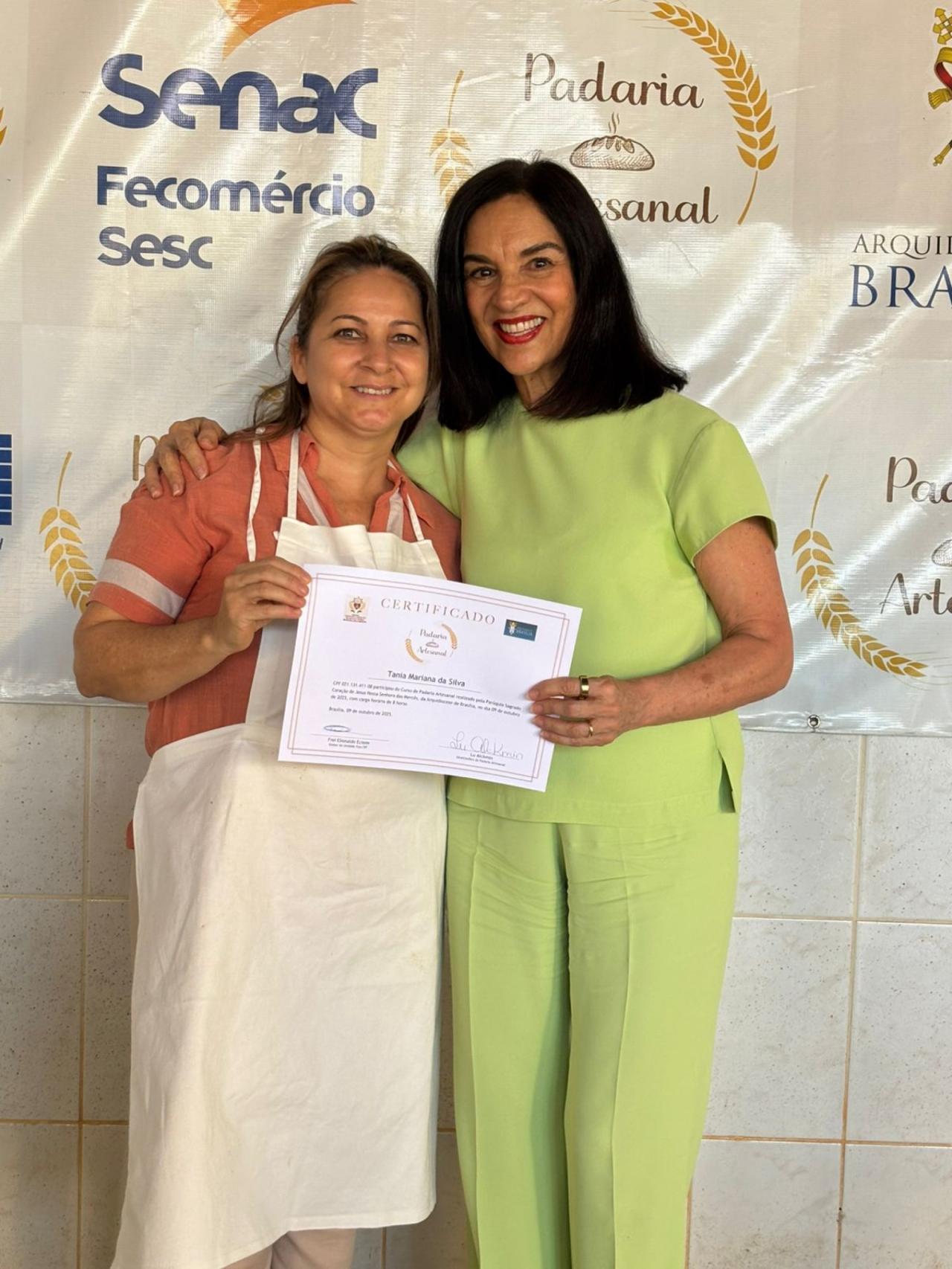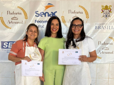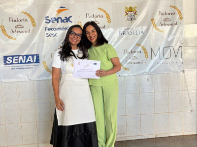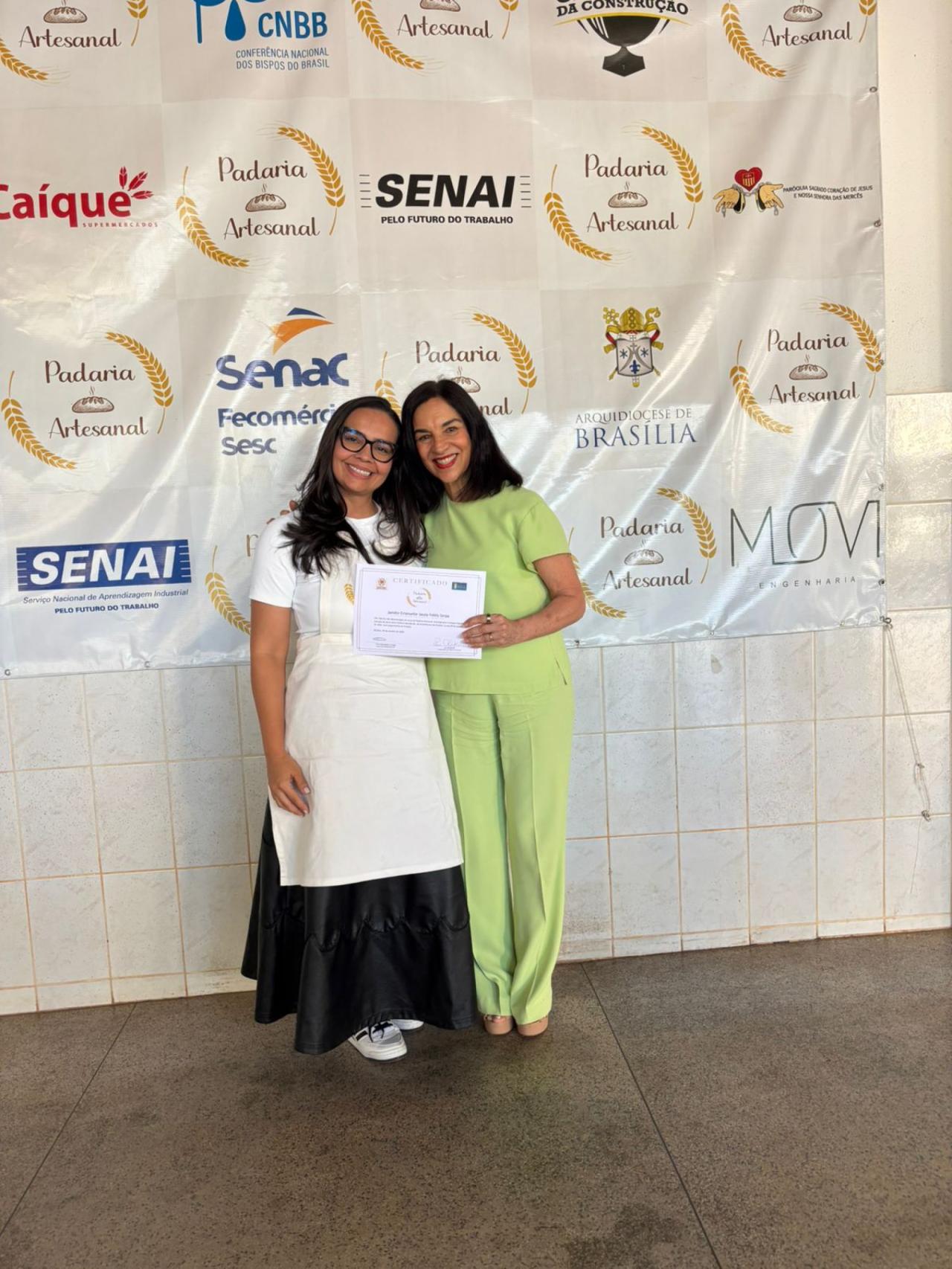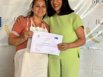 Com a mão na massa. Literalmente. Assim estiveram, nesta semana em Brasília, a nutricionista e responsável técnica pela Padaria Municipal, Jamille Foléis Serpa, e a padeira Tânia Mariano da Silva. As duas representantes de Sorriso participaram, na capital federal, do curso prático do programa Padaria Artesanal.