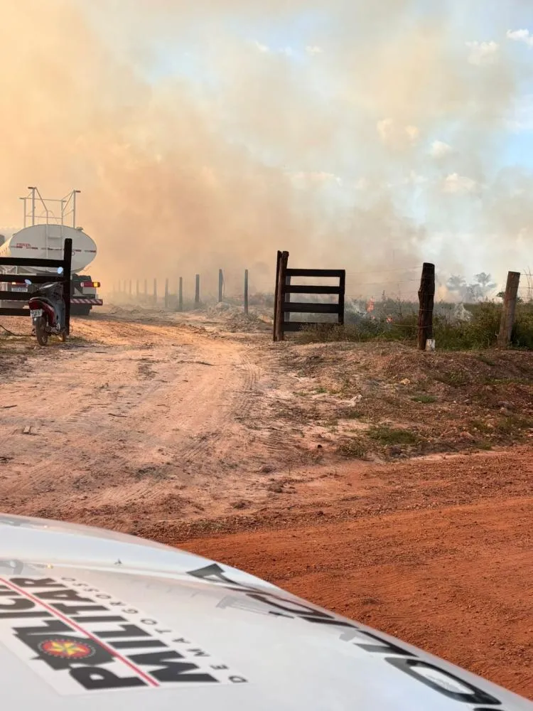 De acordo com a Polícia Militar, uma denúncia anônima informou que o fogo se alastrava rapidamente e ameaçava chegar à área urbana. Os policiais se deslocaram até o local e encontraram o suspeito, identificado como L., tentando conter as chamas com um balde, mas o incêndio já estava fora de controle.
