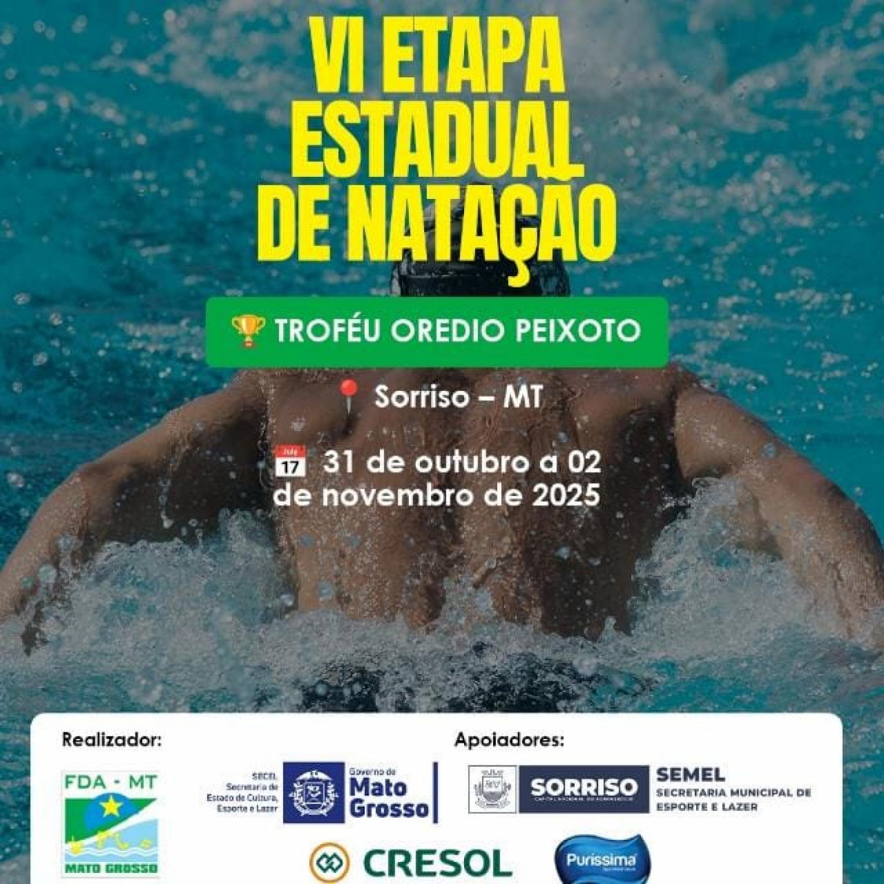 Teve início, nesta sexta-feira (31), a VI Etapa do Campeonato Estadual de Natação – Troféu Oredio Peixoto, que será realizada até o dia 2 de novembro, na piscina da Escola Estadual Mário Spinelli, em Sorriso.