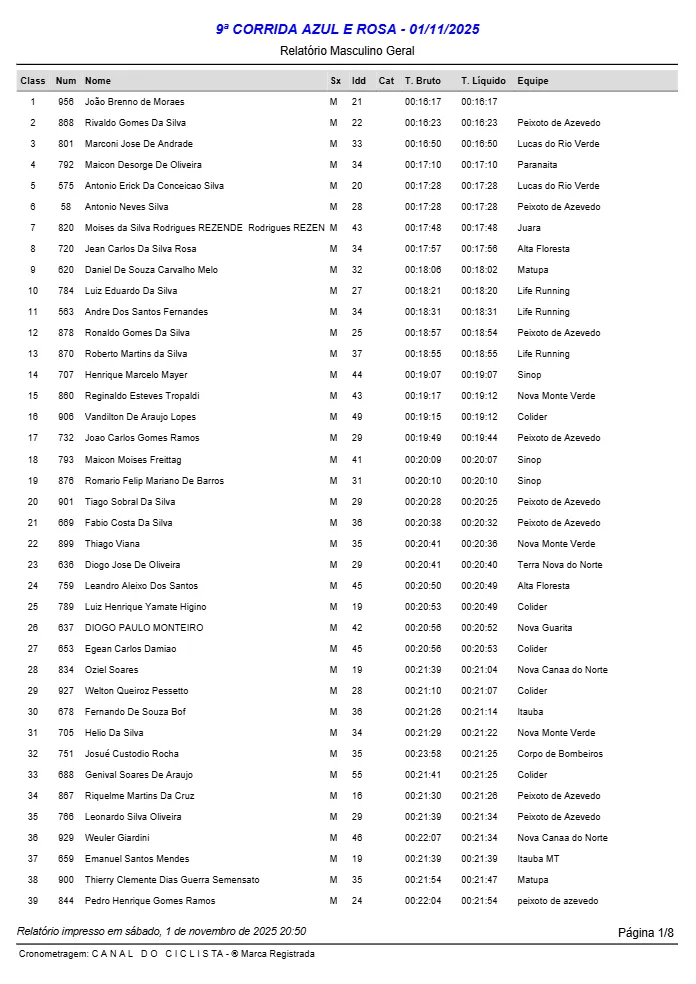 Colíder sediou neste sábado (1º de novembro) a 9ª edição da Corrida Azul e Rosa, um dos eventos mais aguardados do calendário esportivo do município e de toda a região norte de Mato Grosso. Organizada pela Life Running, a prova reuniu 1.000 participantes, marcando um recorde histórico de inscrições e consolidando o sucesso da iniciativa.