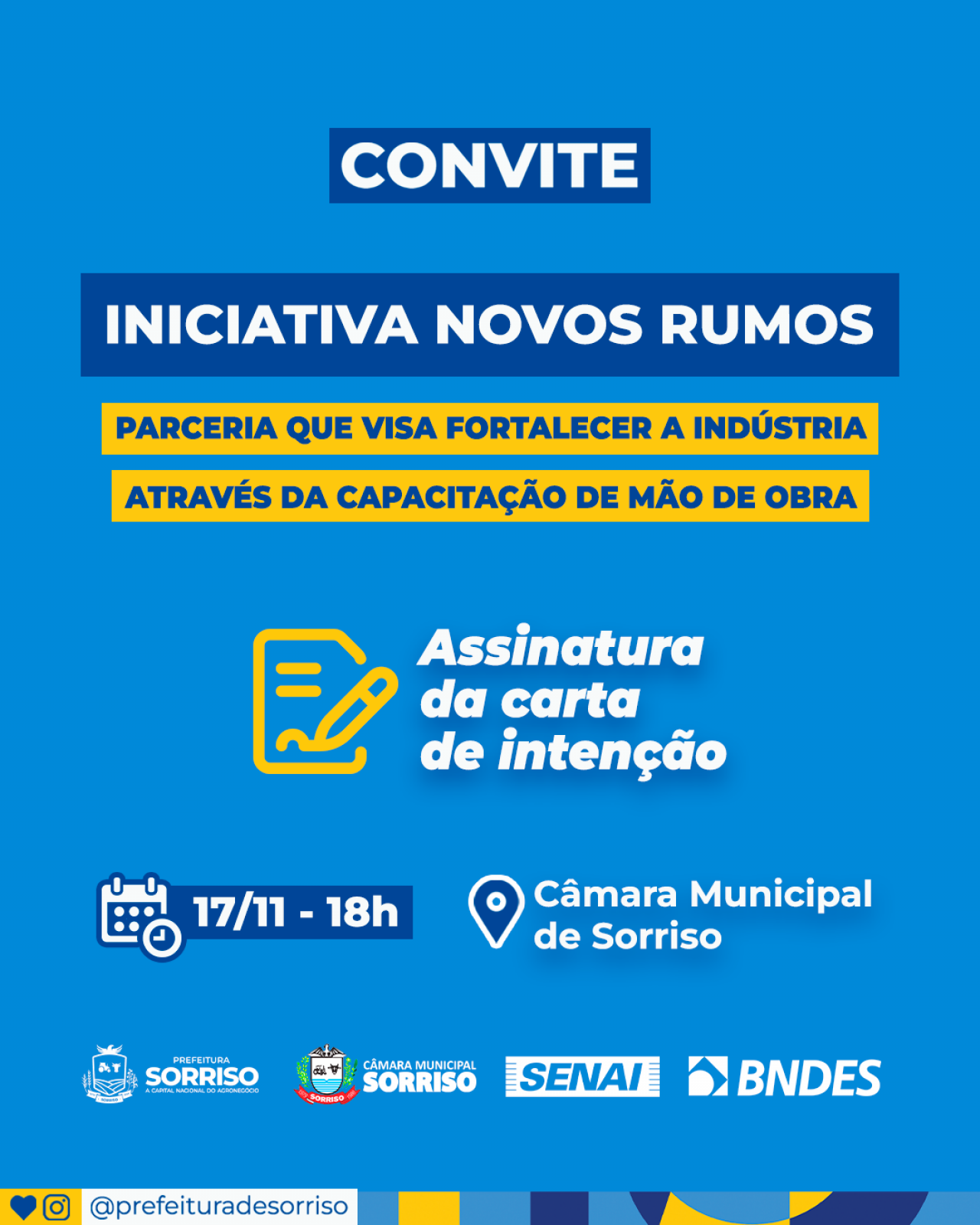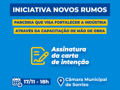 A Confederação Nacional da Indústria (CNI), o Banco Nacional de Desenvolvimento Econômico e Social (BNDES) em parceria com o Senai (Serviço Nacional de Aprendizagem Industrial), apresentam, na próxima segunda-feira (17/11), em Sorriso, o projeto Novos Rumos, que busca fortalecer a responsabilidade social das indústrias sorrisenses. A iniciativa visa enfrentar desafios da vulnerabilidade social, promovendo educação e qualificação profissional para as comunidades que vivem no entorno de empresas. A apresentação acontecerá na Câmara Municipal de vereadores, a partir das 18h.