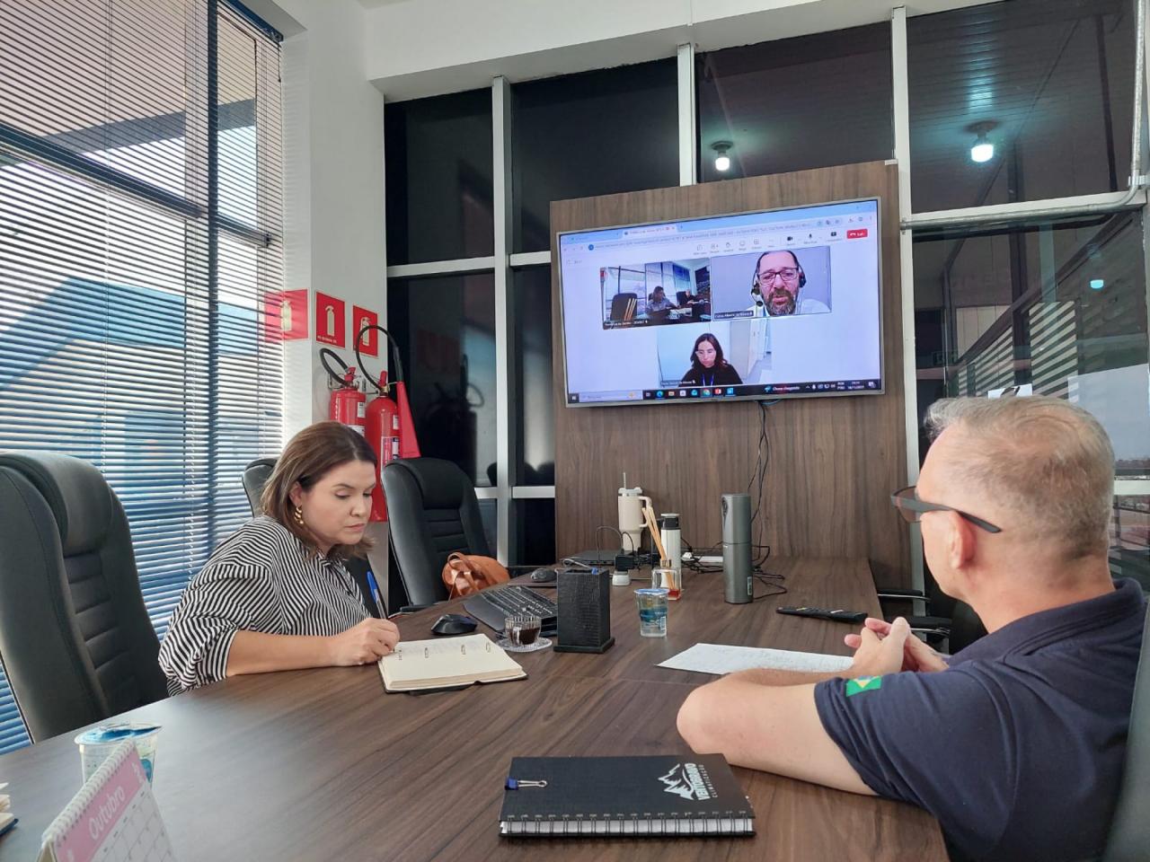 Na manhã desta terça-feira (18/11), a secretária adjunta de Desenvolvimento Econômico e Turismo de Sorriso, Cristiane Santos, participou de uma reunião online, na sala de reuniões da SEMDET, com representantes do Ministério da Ciência, Tecnologia e Inovação (MCTI) para discutir a estruturação do ecossistema do Parque Tecnológico Luiz Giroletti. O encontro foi organizado a pedido da ministra Luciana Santos, com o objetivo de alinhar diretrizes e receber orientação técnica para consolidar a infraestrutura de inovação no município.