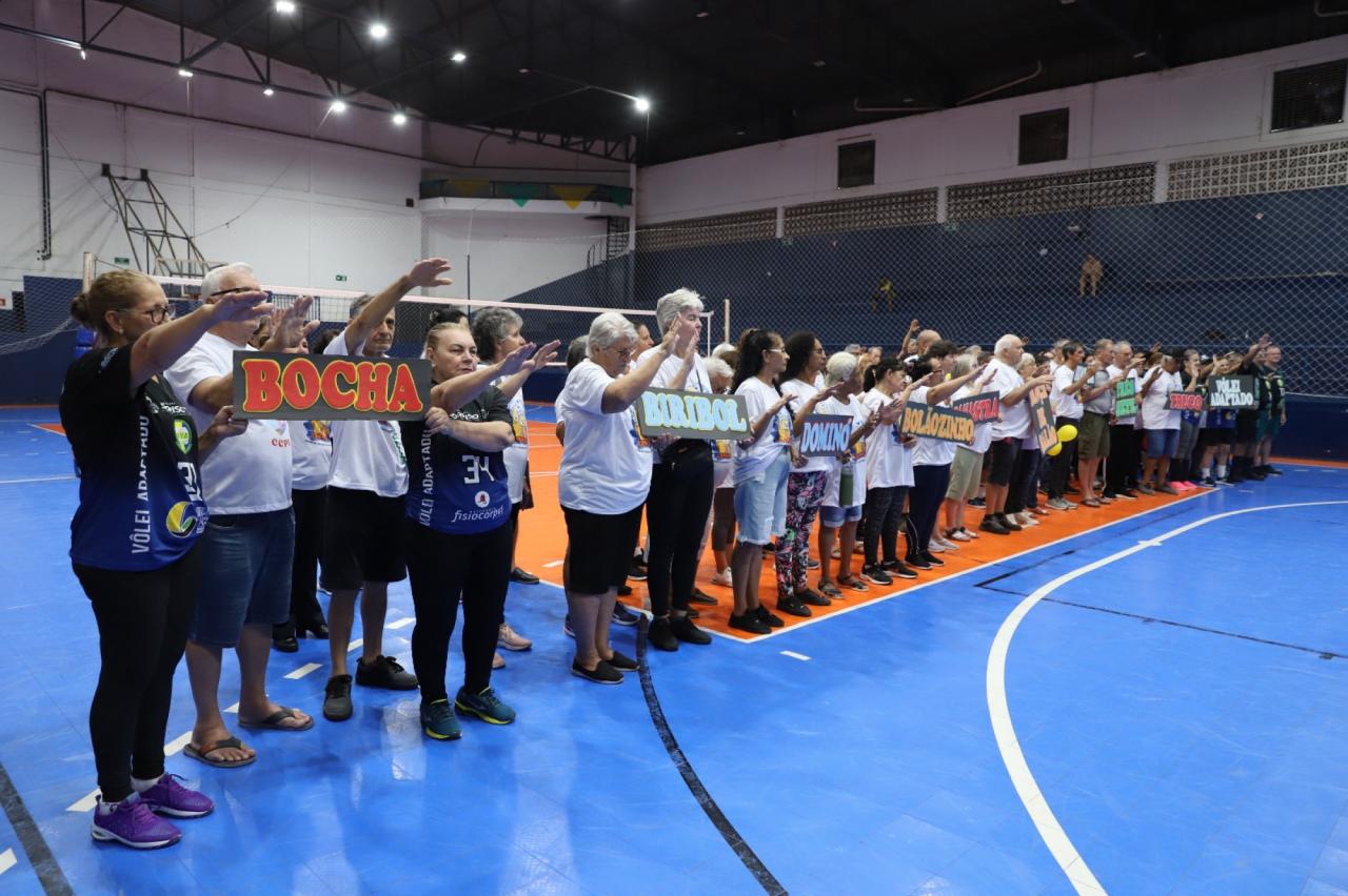 “Normalmente, a volta olímpica é dada no fim das competições, como uma forma de celebrar a vitória, mas neste ano, iniciamos a competição com esta caminhada em volta do ginásio, como forma de destacar que o espírito esportivo, a superação e o esporte como ferramenta de integração e socialização são os grandes vencedores desta competição”, destaca a coordenadora do Centro de Convivência da Pessoa Idosa (CCPI), Silvana Milan.