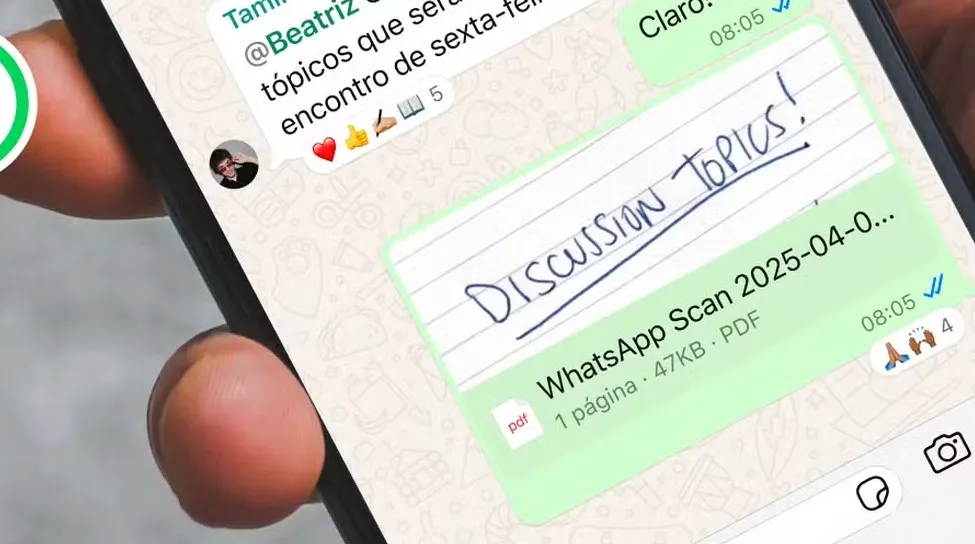 A opção começou a ser liberada no WhatsApp para iPhone em abril, mas agora também está disponível para Android. O documento digitalizado pelo WhatsApp é transformado em um arquivo de PDF, formato que costuma ser usado em versões digitais de documentos, livros, entre outros.