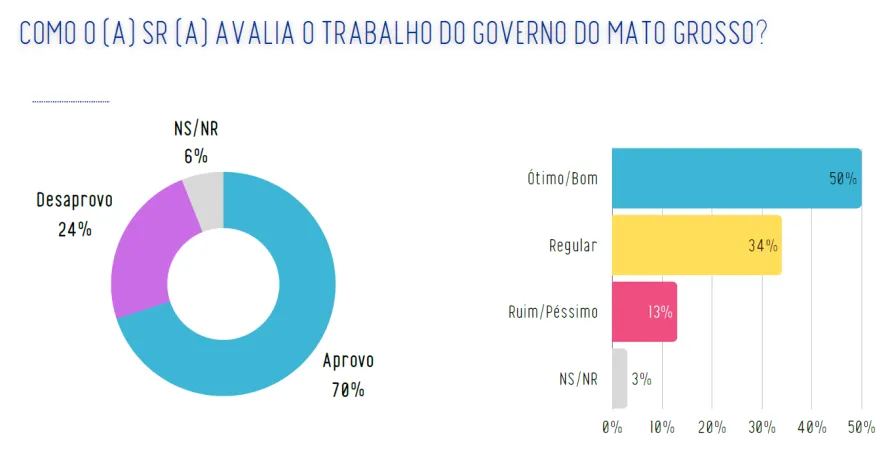 A gestão Mendes também tem aprovação positiva de 70% quando perguntada sobre a avaliação do trabalho do Governo. Uma parcela de 24% desaprovam o Governo, e 6% não sabem e nem responderam.