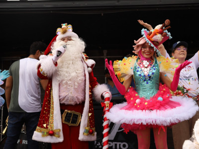 A magia e o encanto do Natal tomaram conta da Praça das Fontes no último sábado, dia 13. Mais de cinco mil pessoas - a maioria crianças cheias de expectativa, acompanharam a chegada do “bom velhinho” que fez questão de atravessas a Praça acompanhado de duendes, fadas e muitos personagens infantis em um desfile que emocionou a criançada.
